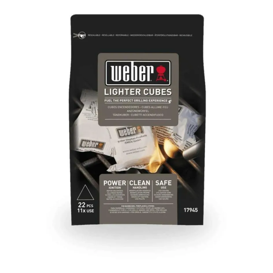 De Weber aanmaakblokjes helpen om het houtskool snel, asvrij en milieuvriendelijk aan te steken. De blokjes vatten snel vlam en kunnen tegen regen en wind.