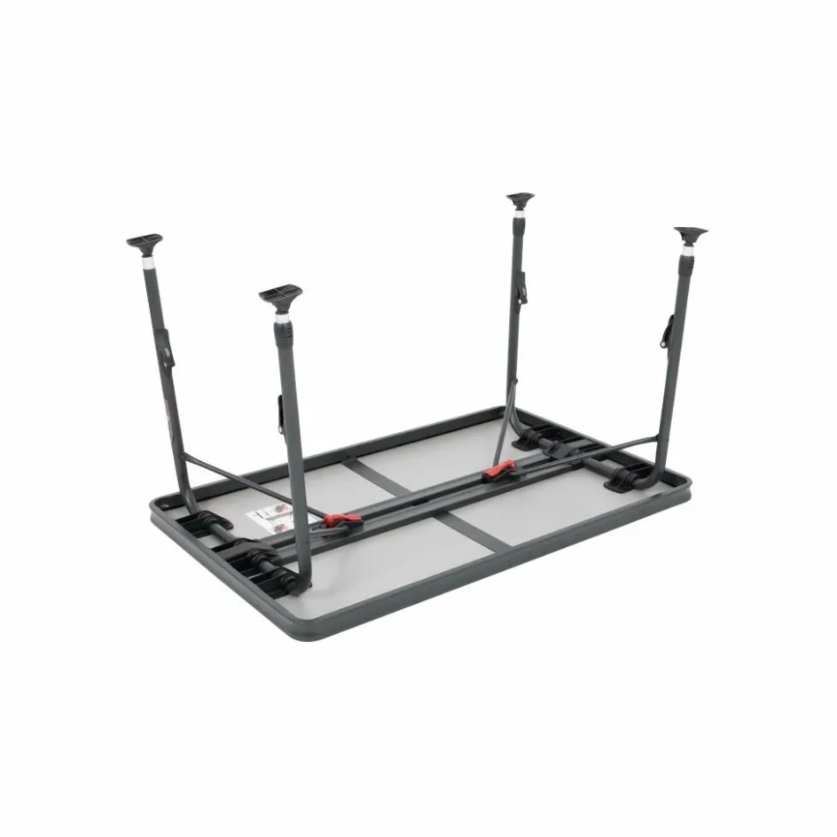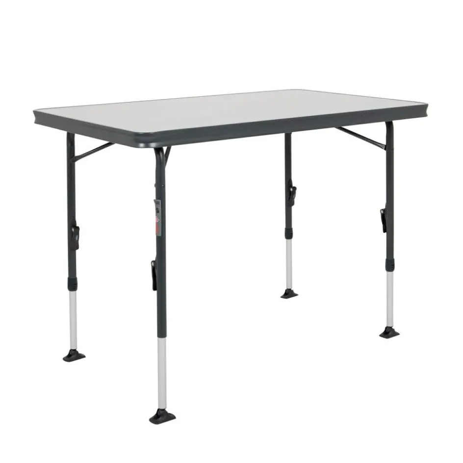 De Crespo AP/246 campingtafel is licht van gewicht en zeer stabiel op elke ondergrond dankzij de verstelbare tafelpoten. Deze poten zijn volledig inklapbaar, waardoor u de tafel eenvoudig en compact kunt vervoeren. Het tafelblad is gemaakt van watervast materiaal, en is daarnaast beter bestand is tegen krassen en hitte.