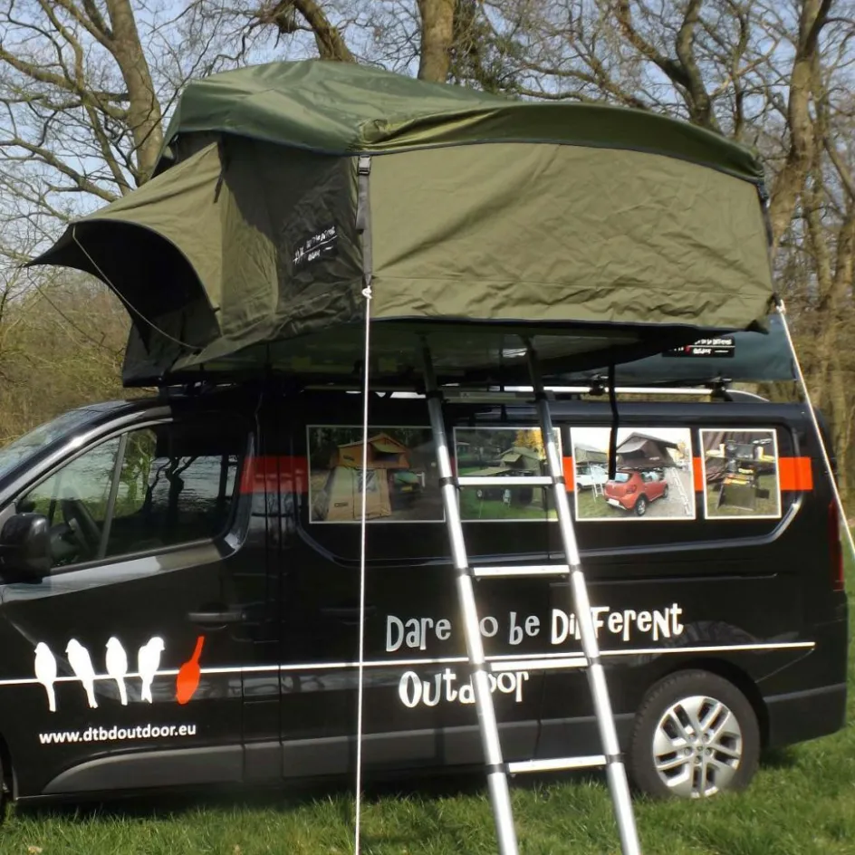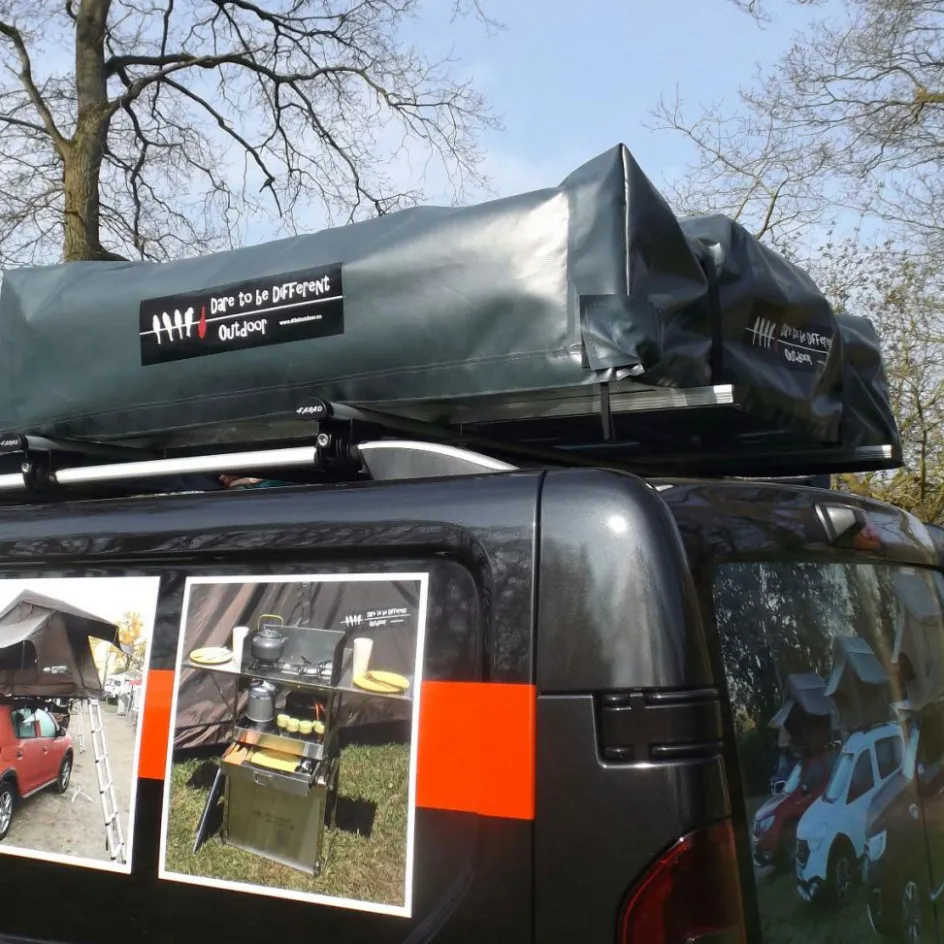 De 140L daktent van Dare to be Different outdoor is een bijzonder onderkomen voor de avontuurlijke kampeerder. Door de daktent op de dakdragers van de auto te bevestigen neemt u de daktent eenvoudig mee, waar u ook naartoe gaat.