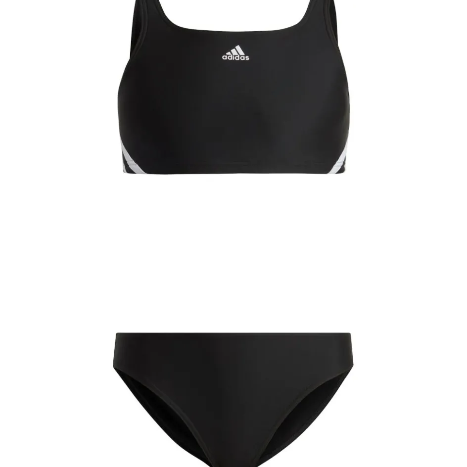 De adidas 3-Stripes bikini voor kinderen is chloorbestendig en het iconische 3 strepen design van adidas valt goed op. De bikini heeft een H-rug model en het model voelt zacht aan. De bikini zit de hele zwempartij comfortabel en is gemaakt van gerecycled materiaal.