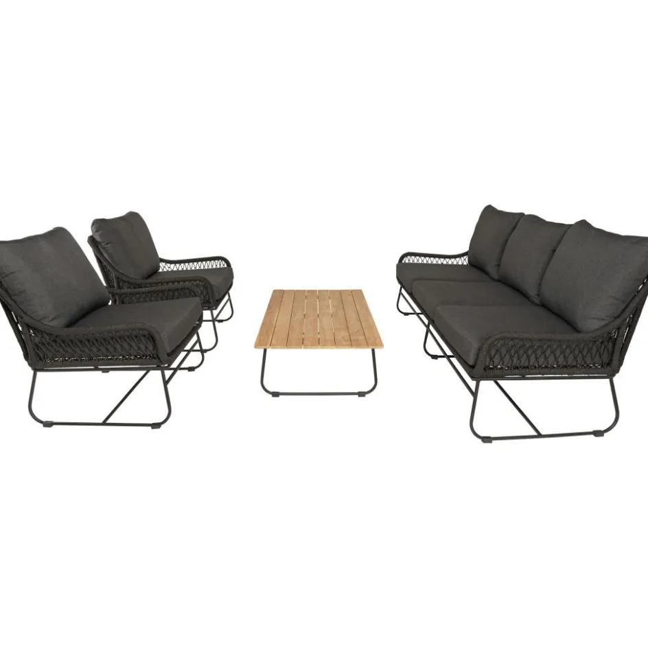 De Bardani Riva loungeset is een moderne 4-delige set bestaande uit een loungebank, twee loungestoelen en een salontafel. Deze set is gemaakt van hoogwaardige materialen en is voorzien van een stevig frame. Hierdoor bent u voor de komende jaren zeker van een degelijk en duurzame loungeset. Deze set van Bardani wordt geleverd inclusief comfortabele zit- en rugkussens.