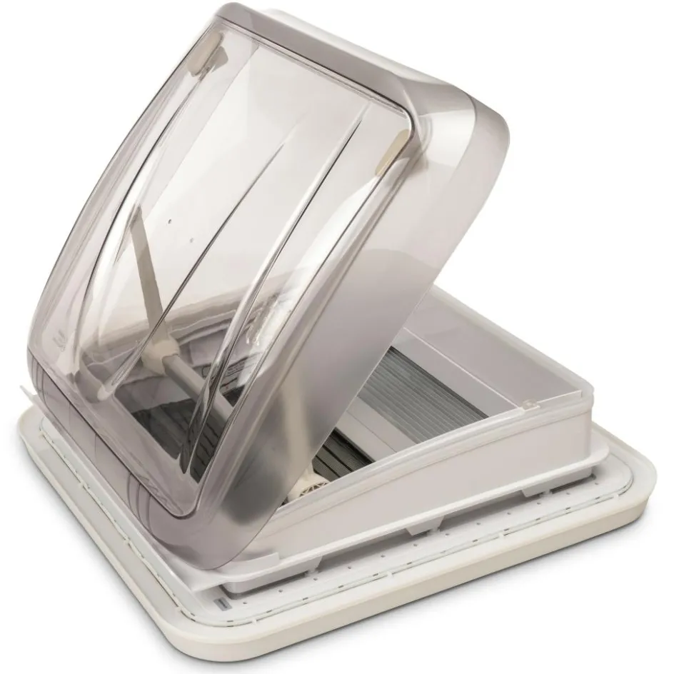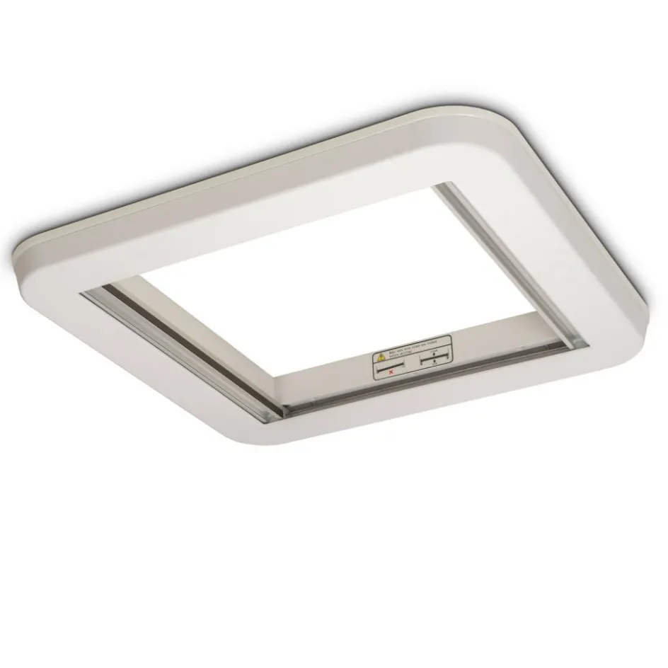 Het DWS Camping RV dakluik is aerodynamisch gevormd en heeft een stevig design. Het DWS Camping dakluik is snel handmatig te openen en vast te zetten met de aluminium stang. De dakluikkap is gemaakt van Uv-bestendig materiaal. Het binnenkader is voorzien van een horrengaas en een verduisteringsgordijn die met een magnetische functie aan elkaar worden gekoppeld. Dit dakluik heeft geen permanente ventilatie.