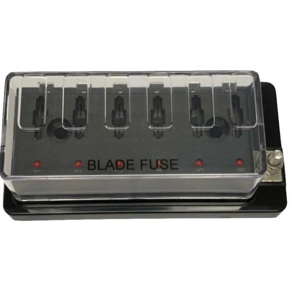 De DWS ATO zekeringhouder + 6 leds kan worden gebruikt voor 6 standaard en mini steekzekeringen. Deze DWS zekeringhouder is voorzien van een afdekkap die zowel water- als stofdicht is. Wanneer een ledlampje rood brand houdt dit in dat de zekering defect is.