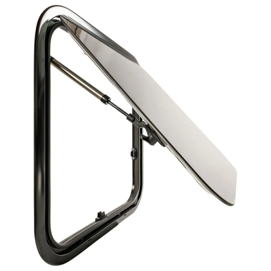 Het DWS Camping klapraam, met een afmeting van 500 bij 300 millimeter, is een stijlvolle toevoeging voor uw caravan of camper. Het binnenkader is uitgerust met een hor en verduisteringsgordijn met magneetsluiting. Het frame is gepoedercoat en vervaardigd uit sterk aluminium. Het grijs getinte, dubbele acrylglas heeft een strakke uitstraling en is UV-bestendig. Dankzij de telescopische armen kunt u het raam traploos in verschillende standen openen. Met de veiligheidsgrendel sluit u het raam eenvoudig van binnenuit. Bij de montage kunt u het meegeleverde inbouwframe als sjabloon gebruiken.