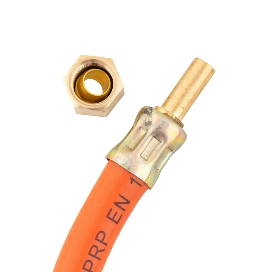 Deze DWS gasslang heeft een ¼ linker binnendraad aansluiting en een gladde 8 millimeter aansluiting met een snijring en wartel rechts.
