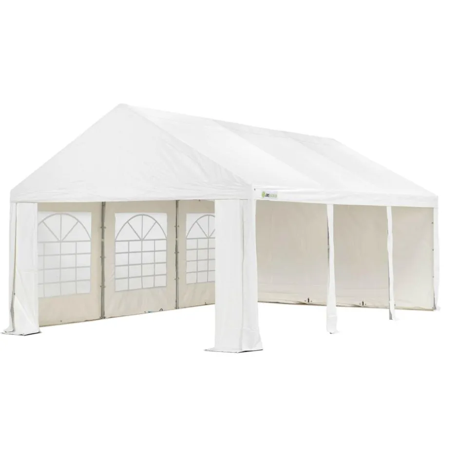 De DWS Ibiza partytent 400 x 600 cm is een stevige keuze voor tuinfeesten, buurtborrels en familiegelegenheden. Met 24 m² overdekte ruimte, een zijhoogte van 200 cm en een nokhoogte van 320 cm creëert u een lichte, royale plek waar gasten prettig kunnen staan en lopen. Dankzij de meegeleverde voor-, achter- en zijwanden bepaalt u zelf of u open of juist beschut en privé wilt zitten.