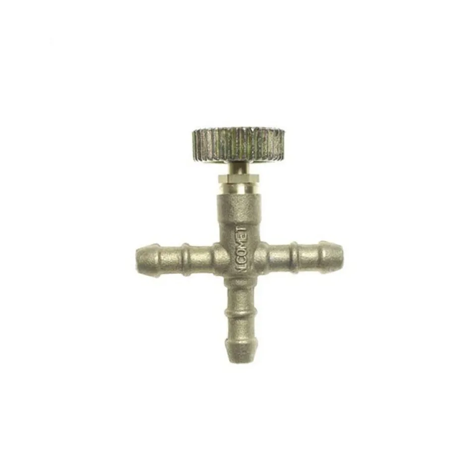 Met dit Slangtule T-stuk met kraan van DWS kunt u de gasstroom splitsen en met een kraan bedienen. Het T-stuk is gemaakt van messing en heeft aan alle zijden een slangpilaar om de slangen aan te sluiten.