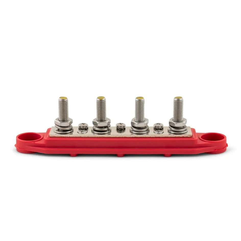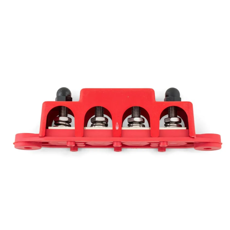 De DWS Verdeelstrip met afdekkap 4 punts in rood is compacter dan de HeavyDuty versie maar biedt nog steeds veelzijdigheid dankzij zijn capaciteit van 250A. Geschikt voor diverse toepassingen met een maximale stroomsterkte van 250A bij 12V en een maximaal voltage van 48V. Voorzien van 4 identieke bouten van M8.