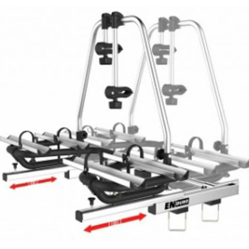 De Enduro BC260 is een fietsendrager voor op de dissel van de caravan die bovendien tot wel 34 centimeter uitschuifbaar is. Het schuifsysteem van deze dissel zorgt ervoor dat u altijd bij de bergruimte van uw caravan kunt. Tijdens deze actie kunnen de fietsen gewoon op de drager blijven staan. De BC260 fietsendrager is geschikt voor 2 gewone of elektrische fietsen en weegt slechts 12,5 kilo.