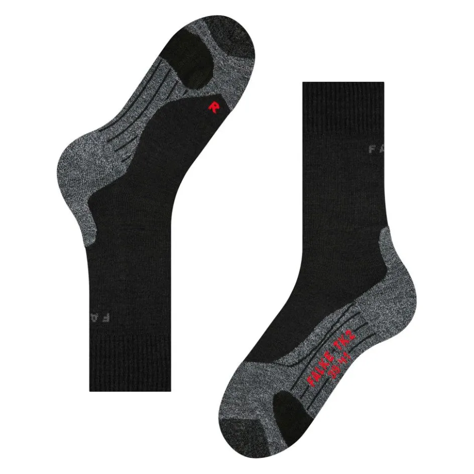 De Falke TK2 wandelsokken voor heren in de kleur black mix zijn comfortabele sokken voor wandelingen over gemakkelijk begaanbaar terrein. Deze Falke wandelsokken hebben een medium polstering en geven dankzij de drielaagse constructie de perfecte temperatuur aan uw voeten. De sokken zijn speciaal ontwikkeld voor een linker- en rechtervoet voor de optimale pasvorm.