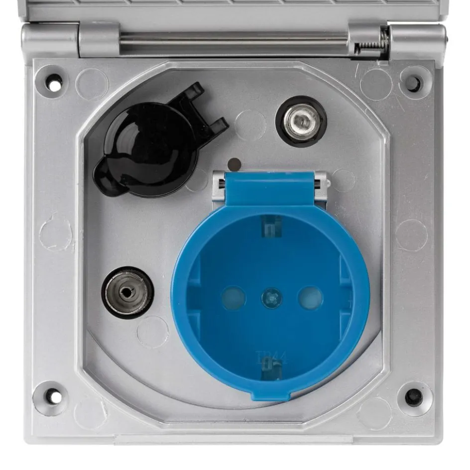 Door de ESB-3 Unit uitvoerdoos van Crusader in de wand van caravan of camper te monteren is televisie kijken onder de luifel of in de voortent heel eenvoudig. Deze uitvoerdoos beschikt namelijk over de benodigde aansluitingen. Deze uitvoering heeft geen voorgemonteerde aansluitkabels en is IP44 spatwaterdicht.