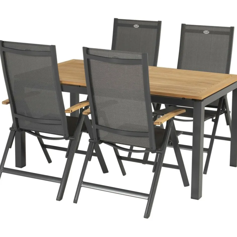 De Hartman Sonata 160 Aruba verstelbaar tuinset in de kleur xerix teak is duurzaam en gemakkelijk schoon te maken. Deze Hartman tuinset bestaat uit een tafel met daarbij vier verstelbare stoelen. De Hartman Sonata tuintafel is bestand tegen uiteenlopende weersinvloeden dankzij het aluminium onderstel en het teakhouten blad. De Hartman Aruba verstelbare tuinstoelen hebben een aluminium frame en een textileen rug- en zitgedeelte, ook deze stoelen zijn zeer weersbestendig. De gehele set is daarmee onderhoudsarm, bestand tegen uiteenlopende weersinvloeden en duurzaam.
