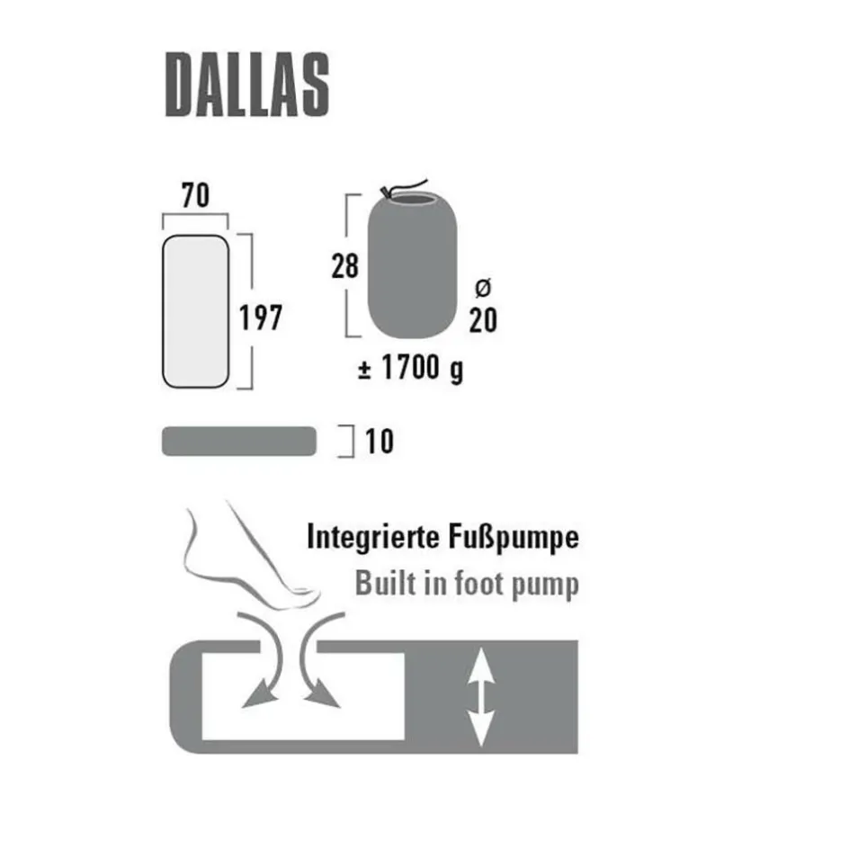 Het High Peak Dallas Single luchtbed in de kleur cintronelle is een zeer comfortabel luchtbed met een lengte van 197 centimeter. Het High Peak luchtbed is 10 centimeter hoog en beschikt over 23 horizontale luchtkamers, hierdoor ervaart u een goede gewichtsverdeling en maximaal comfort. Het luchtbed is ontwikkeld met anti slip waardoor deze niet wegglijdt op gladde ondergronden. Door de geïntegreerde voetpomp kunt u het matras zeer snel en gemakkelijk oppompen. Ook kan het luchtbed ingepakt worden tot een zeer klein pakketje, hierdoor is het ideaal om het bed ook mee te nemen op reis.
