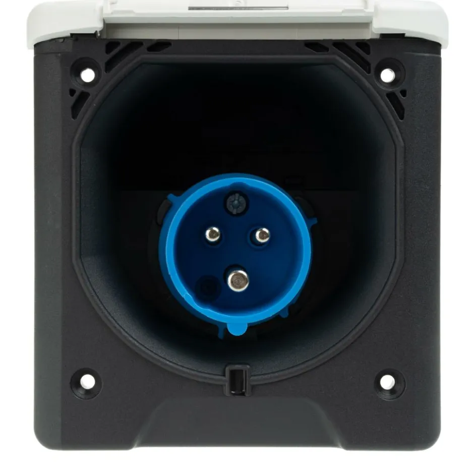 Het contact is tegen vocht, voor de veiligheid en voor het oog netjes afgewerkt met een deksel. Het scharniermechanisme houdt de deksel stevig open of dicht. Magneten in de deksel sluiten deze extra stabiel. De ruimte in de stekkerdoos is lekker breed uitgespaard zodat u een CEE stekker eenvoudig kunt inprikken. Alle zichtbare elementen van de aanvoerdoos zijn vervaardigd van UV-bestendig kunststof zodat verkleuring nauwelijks optreedt.