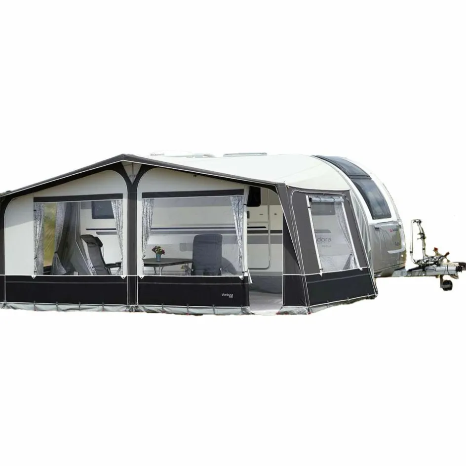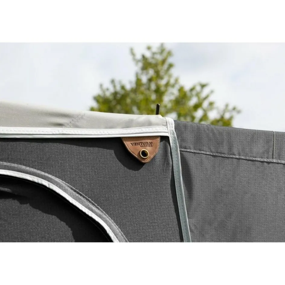 De Isabella Ventura Pacific D250 voortent is uitgevoerd in moderne grijstinten en met een diepte van 2,5 meter, past deze voortent op vrijwel iedere campingplek. Afritsbare panelen, doordachte ventilatie en onderhoudsarm materiaal maken deze voortent bijzonder geschikt voor rondtrekkende kampeerders die snel willen opzetten en flexibel willen wonen.