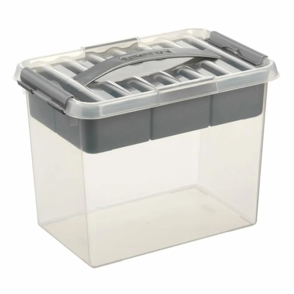 De Q-Line Multi opbergbox van Sunware met een inhoud van 9 liter is een praktische opberger. Deze box heeft een handige inzet met een vakverdeling, waarin allerlei kleine spullen overzichtelijk opgeborgen kunnen worden. Het deksel is voorzien van een hengsel en is stevig te sluiten met clips.