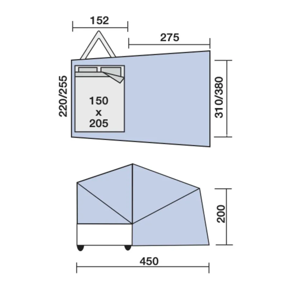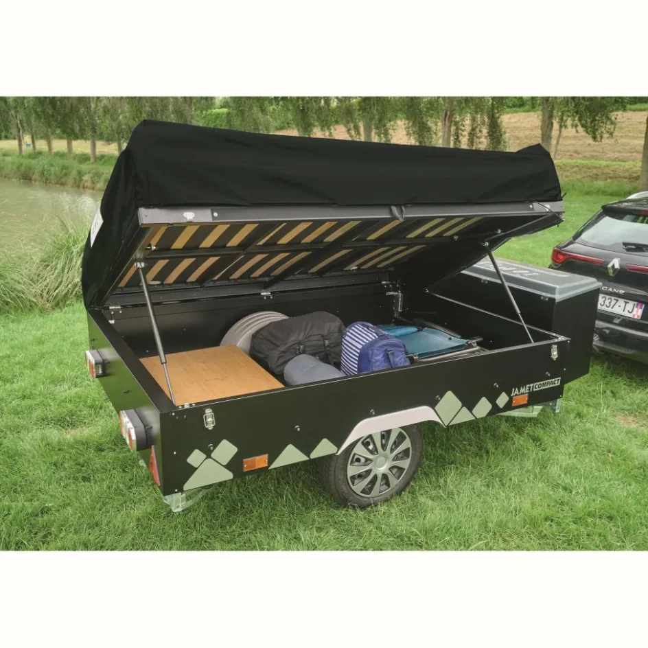 Deze Jametic Compact Eco vouwwagen is zelfs door één persoon eenvoudig op te zetten. Door de voortent omhoog te trekken en de twee schuine stangen uit te schuiven, staat de tent al meteen klaar. Het design loopt van smal naar breed en zorgt voor veel leefruimte voor 2 personen en opbergmogelijkheden voor al uw spullen. Zo is er een ruime slaapcabine aanwezig met donkere doek, om de binnentent goed te verduisteren. De 3 ramen in de voortent hebben ventilatie openingen, zodat de tent altijd doorgelucht wordt en er een fijn klimaat in de tent ontstaat.