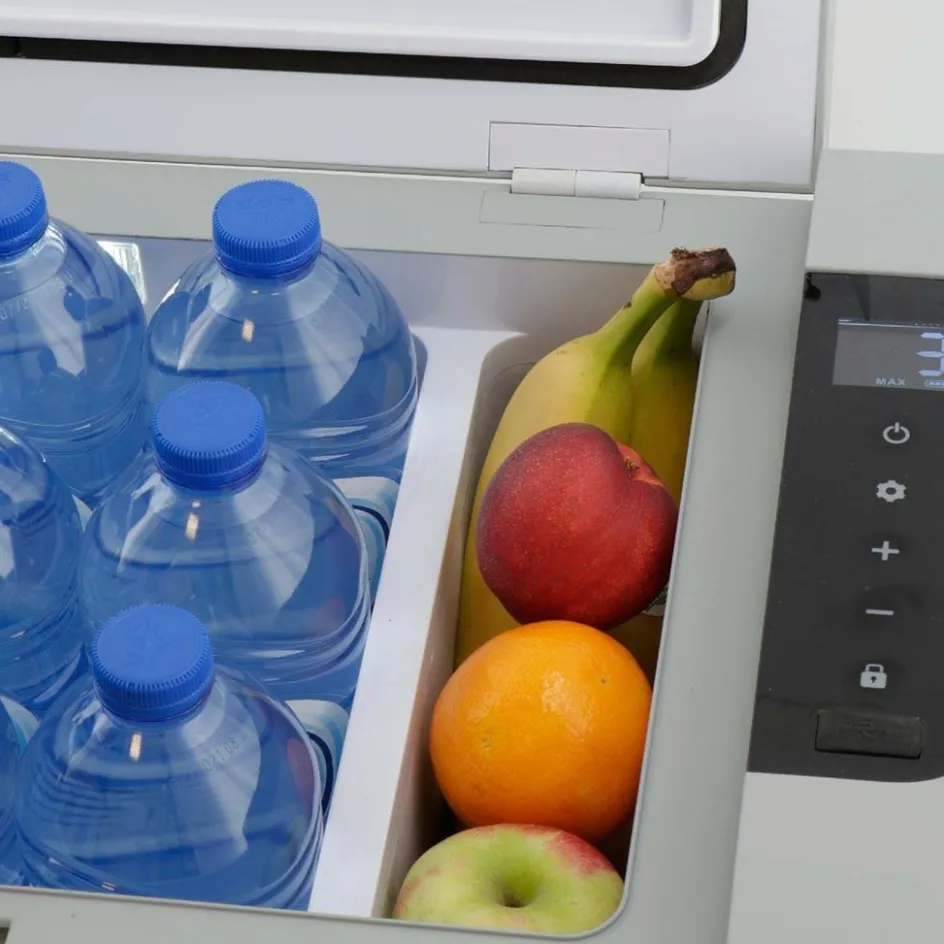 Op de Mestic MCC 35 AC/DC compressor koelbox zit een touch LCD-display. Met dit display kunt u eenvoudig het koelvermogen instellen. Deze compressor koelbox heeft een koelvermogen van +10 graden Celsius tot -18 graden Celsius. De omgevingstemperatuur heeft geen invloed op de koelprestaties. De MCC 35 koelbox is dus ook geschikt voor landen waar de temperatuur hoog op loopt.