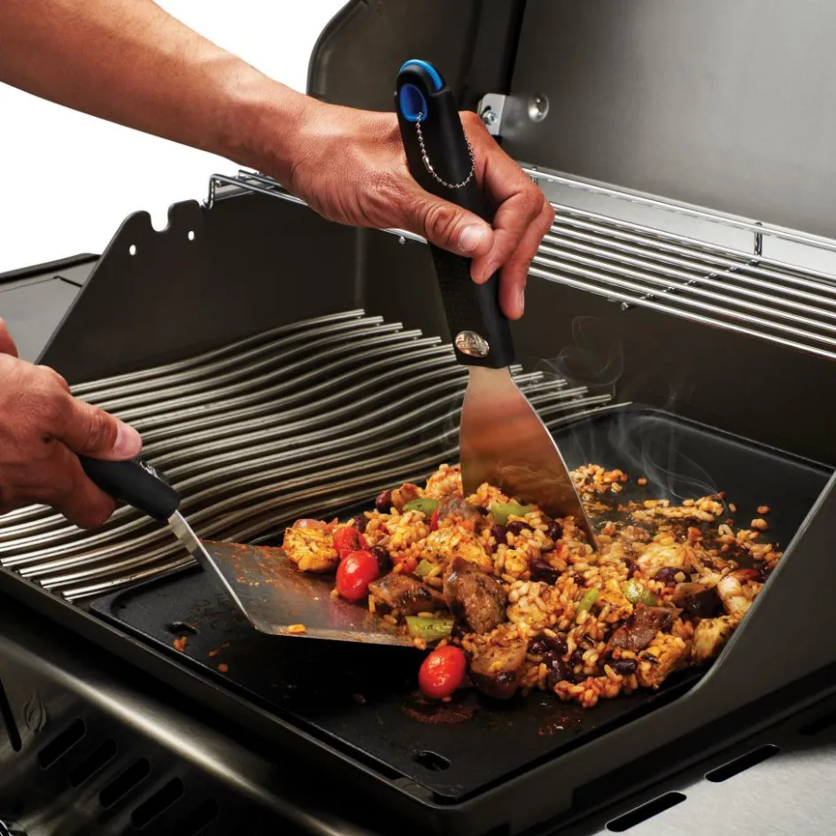 De Napoleon Plancha gereedschapsset 2-delig is ideaal om te gebruiken op een grillplaat of plancha en brengt het echte Europese stijl barbecueën naar voren. Deze Napoleon gereedschapsset bestaat uit een extra grote spatel en schraper. Met de spatel kunt u gemakkelijk het eten bereiden en verwerken terwijl u met de schraper alles op een gemakkelijke manier veilig schoon kunt maken. De set is gemaakt van RVS en hebben ergonomische handvaten voor jarenlang comfortabel gebruik.