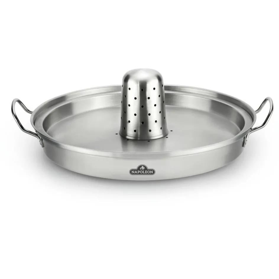 De Napoleon Pro gevogeltestomer en pan heeft een 3 in 1 ontwerp. Zo kunt u het gebruiken voor wok, als kookplaat of al smaakkegel. Deze handige Napoleon gevogeltestomer is gemaakt van hoogwaardige roestvast staal en is makkelijk schoon te maken. De handige handvaten maken het eenvoudig om de stomer te verplaatsen.</p.