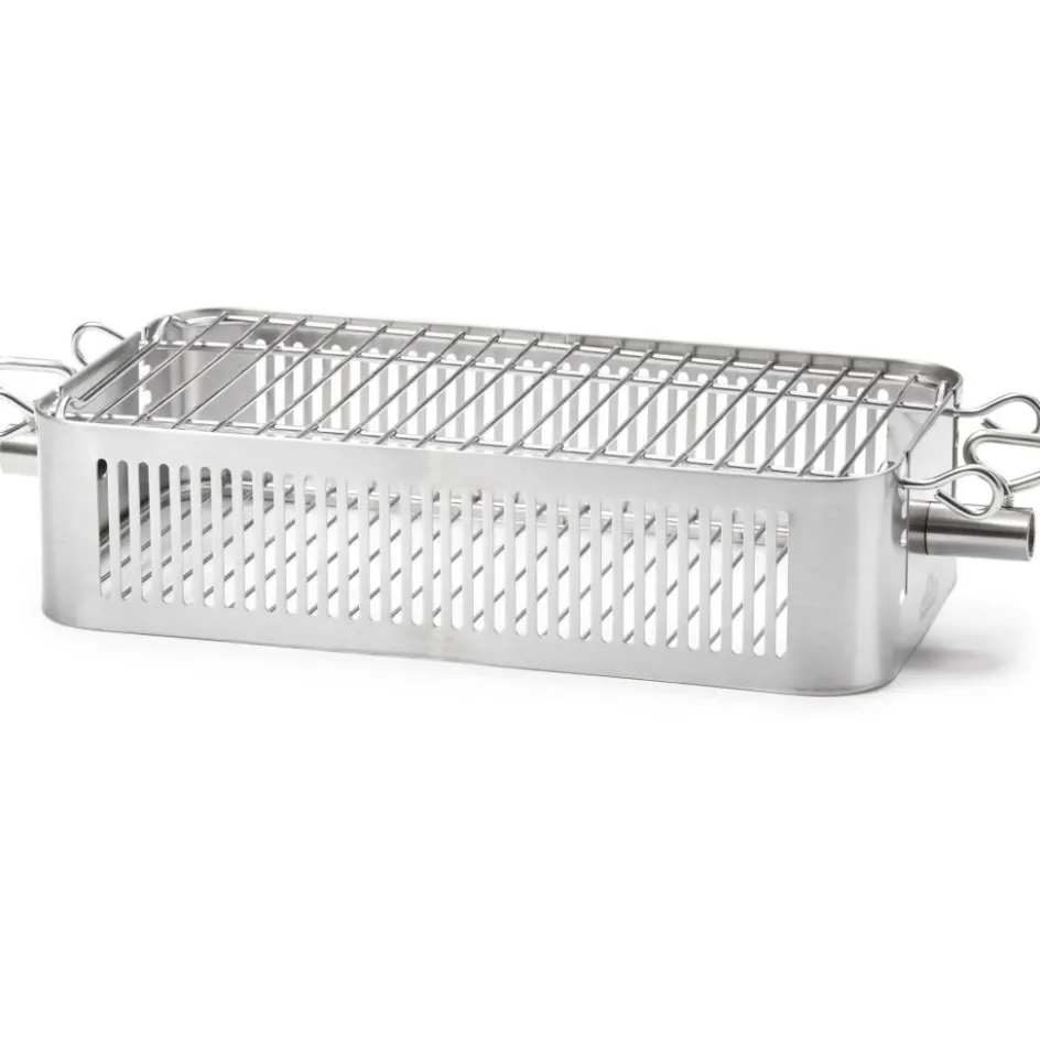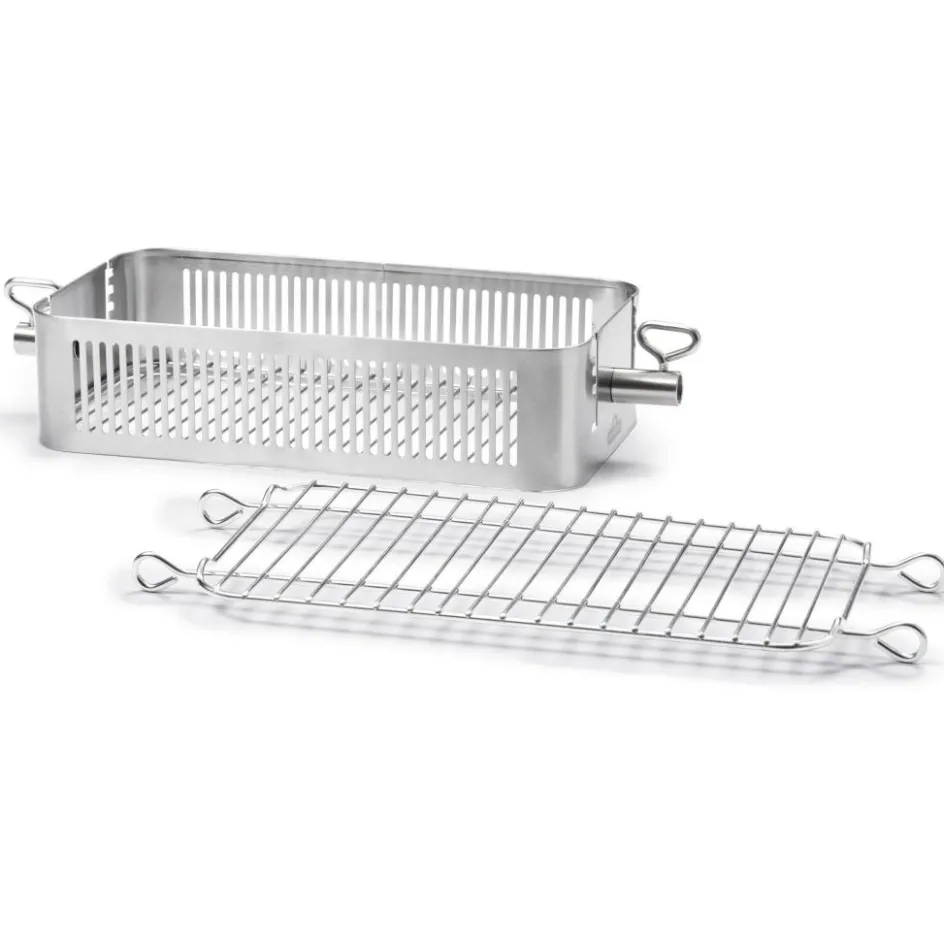 De Napoleon Verstelbare RVS mand voor draaispit is instelbaar op 4 verschillende niveaus, zodat u het vlees, groentes of andere heerlijk voedsel kunt bereiden zoals u dat wilt. De RVS mand past op een vierkant- en zeshoekige draaispit en deze is makkelijk te reinigen.