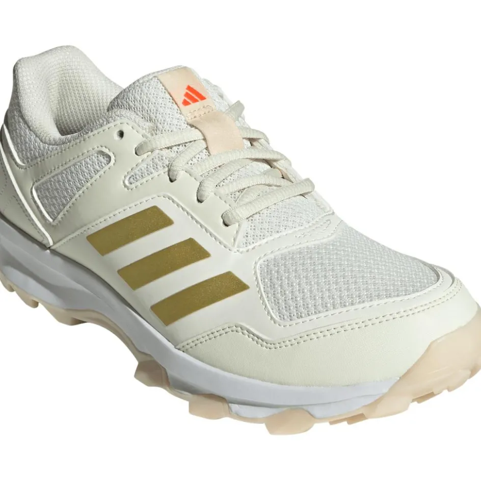 De adidas Fabela Rise hockeyschoenen voor dames beschikken over synthetische overlays die elke beweging ondersteunen. Daarnaast is het bovenwerk gemaakt van mesh materiaal, waardoor uw voeten koel blijven. Ook blijven uw voeten droog tijdens regen doordat het bovenwerk een laagje folie heeft. Bovendien bieden de hockeyschoenen van adidas voldoende grip dankzij de rubberen nopjes onder de loopzool.
