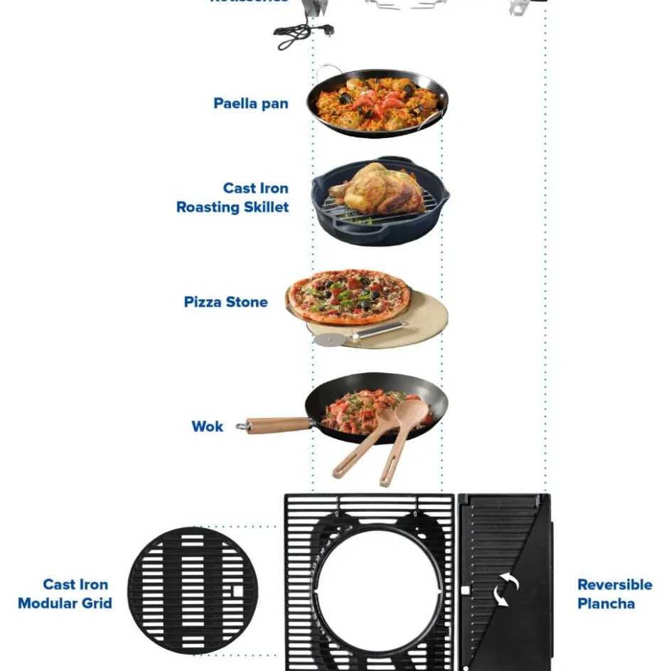 Deze Campingaz 3 Series Onyx S buitenkeuken is voorzien van 3 efficiënte en krachtige branders gemaakt van roestvrij staal en van een krachtige zijbrander voor het bereiden van sauzen of koken van bijgerechten. Deze branders zijn voorzien van het Blue Flame Power System, waardoor u profiteert van een snelle voorverwarming, goede warmteverdeling en minder steekvlammen. Dankzij het geïntegreerde InstaClean Aqua Pro System vangt u het vet makkelijk op en maakt u deze buitenkeuken van Campinaz in een handomdraai schoon. Daarnaast kunt u dankzij het Culinaire Modulaire Systeem uw buitenkeuken eenvoudig uitbreiden door de binnenring van het gietijzeren rooster uit te wisselen met de diverse barbecue accessoires.