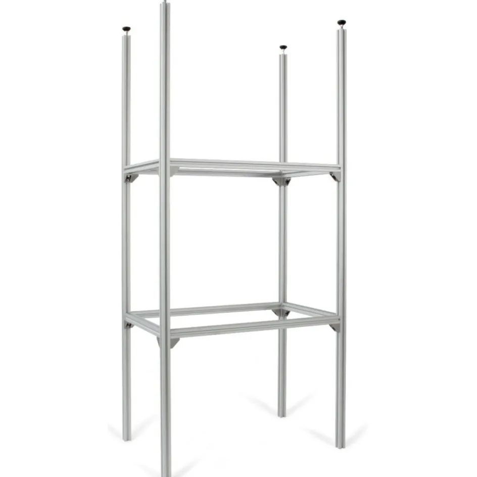 Het Fiamma Garage System, de standaard uitvoering bestaat uit een enkel vak met drie lagen waarin optionele opbergboxen kunnen worden geplaatst of eigengemaakte planken voor het creëren van extra ruimte. Het rek is in hoogte verstelbaar en de staanders kunnen worden ingekort indien nodig.