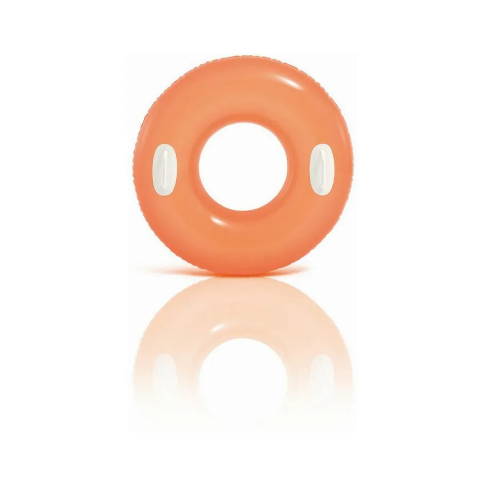 Met de Intex Hi-Gloss opblaasband kan uw kind lekker drijven in het water. Deze opblaasband van Intex heeft twee stevige handvatten en is te vinden in drie vrolijke kleuren: roze, oranje en geel.