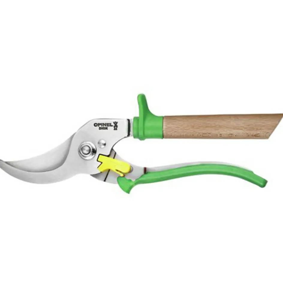 De Opinel Prairie snoeischaar heeft 3 standen om zich aan de diameter van de takken en de grootte van de hand aan te passen. De snoeischaar is gemaakt van roestvrij staal en beukenhout. Daarnaast zijn de handgrepen voorzien van een afscherming voor een comfortabele en veilige grip.