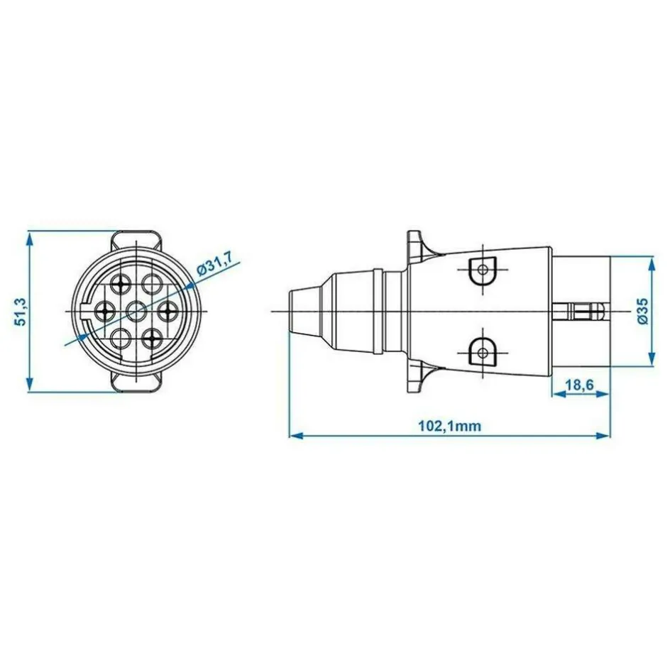 Met de 7-polige PVC stekker kunt u de verlichting aansluiten op een aanhanger, vouwwagen, caravan of fietsendrager. De verschillende polen bieden stroom aan de verschillende lampen, waaronder de remlichten, knipperlichten en anderen lampen.