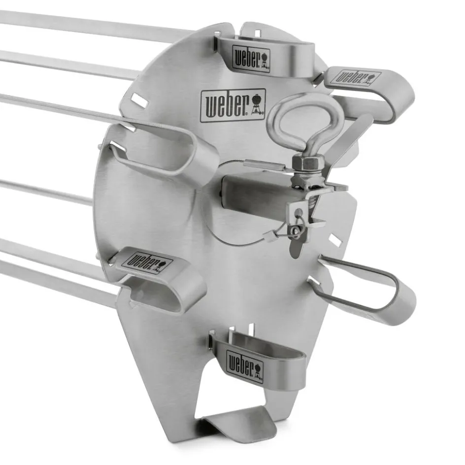 De Weber Crafted braadspiesenset heeft spiesen van 40,64 cm. Deze draaien langzaam rond voor gelijkmatige garing. De braadspiesenset schuift eenvoudig om het braadspit. Geschikt voor Genesis, Spirit en Summit gasbarbecues en Weber houtskoolbarbecues van 57 cm.