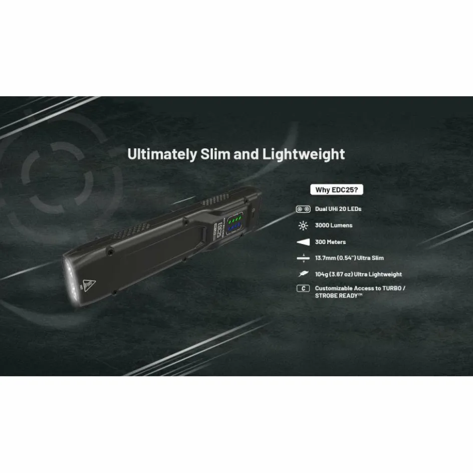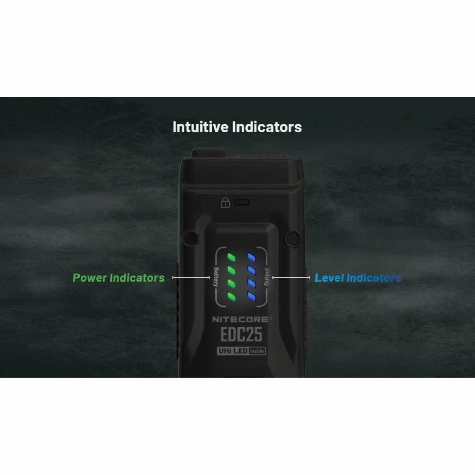 De Nitecore EDC25 zaklamp heeft een maximaal bereik van 300 meter en is oplaadbaar via de USB-C aansluiting. Het compacte formaat maakt het erg eenvoudig om de zaklamp overal mee naartoe te nemen. De groene lampjes geven het batterijniveau aan, terwijl de blauwe lampjes aangeven hoe sterk de zaklamp schijnt. De behuizing is IP54 spatwaterdicht en stofvrij. Daarnaast kunt u de clip eenvoudig vastmaken aan uw broek, waardoor u de zaklamp niet kwijtraakt.