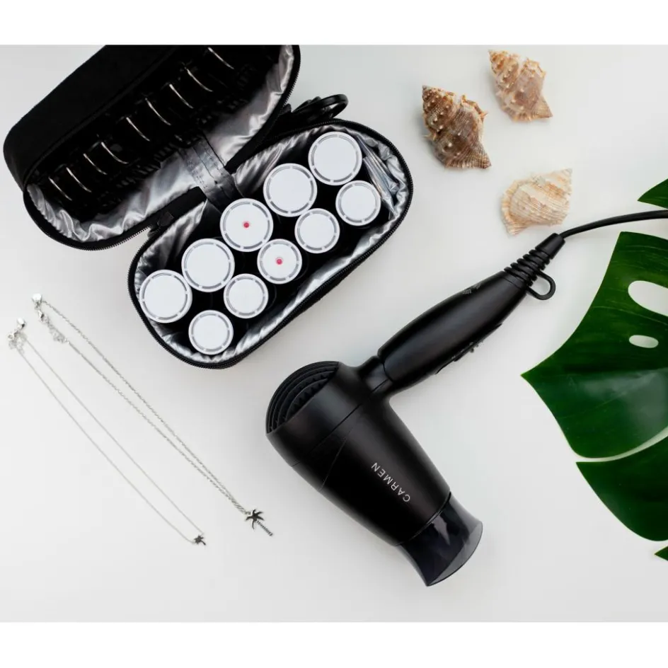 De Carmen TD1215 reisföhn heeft 2 snelheden en 1 warmtestand. De handige reisföhn is inklapbaar en heeft een snoer van 180 centimeter lang. Met een druk op de knop kunt u tussen 110 Volt en 220 Volt wisselen en de föhn overal gebruiken.