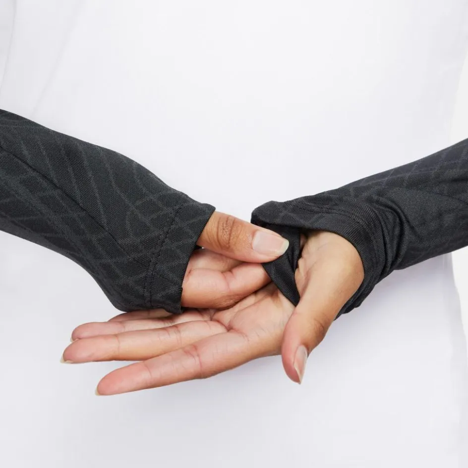 Het Nike Dri-FIT Strike trainingsshirt voor dames is perfect voor tijdens het trainen. De trui houdt u goed warm en de stof droogt snel. Deze trui heeft een kleine rits voor meer ventilatie en de duimgaten houden de mouwen goed op hun plek.