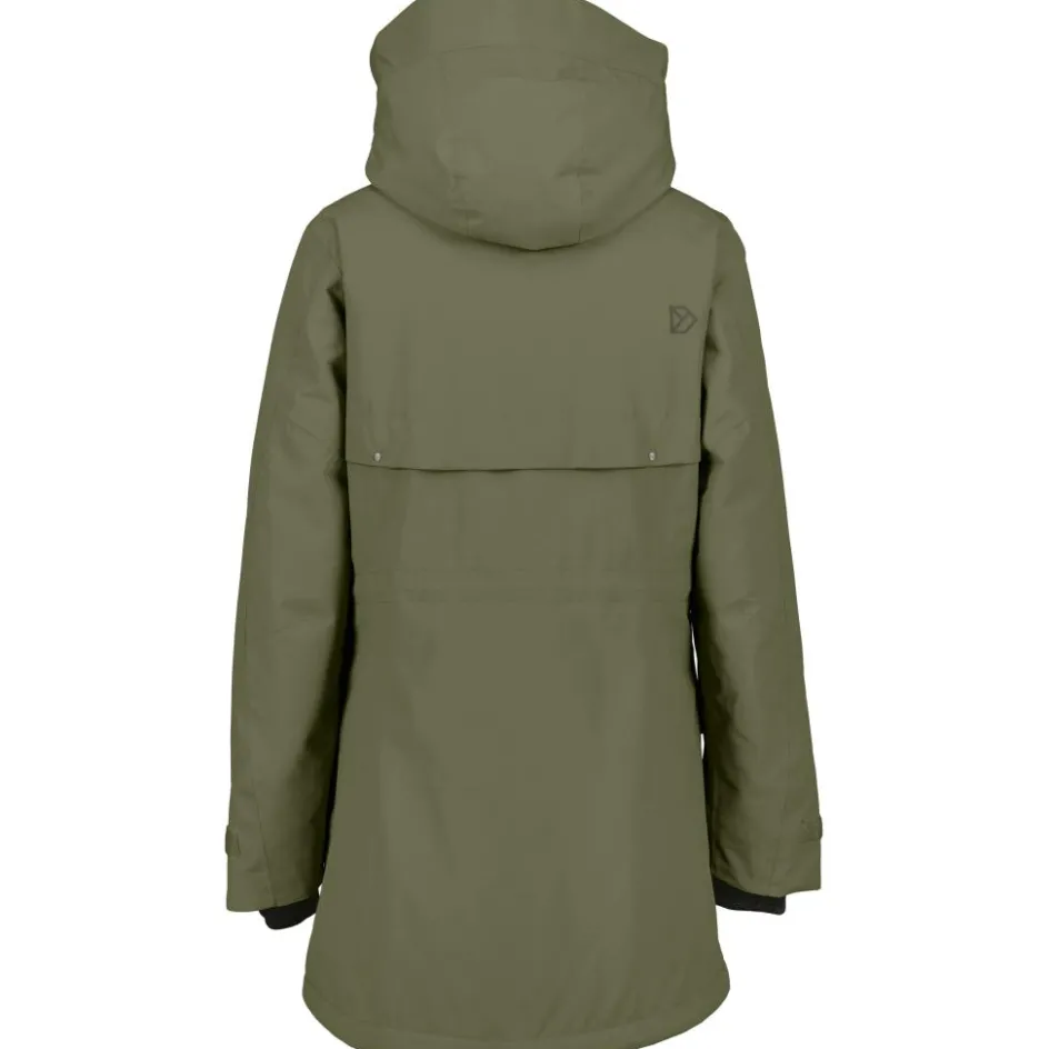 Deze Frida winterjas van Didriksons heeft een verstelbare capuchon met voorgevormde klep. De pasvorm is te verstellen bij de taille en de uiteindes van de mouwen, zodat er zo min mogelijk wind binnendringt. De jas beschikt over voldoende zakken, met en zonder ritsen, om uw spullen of handen in te doen.