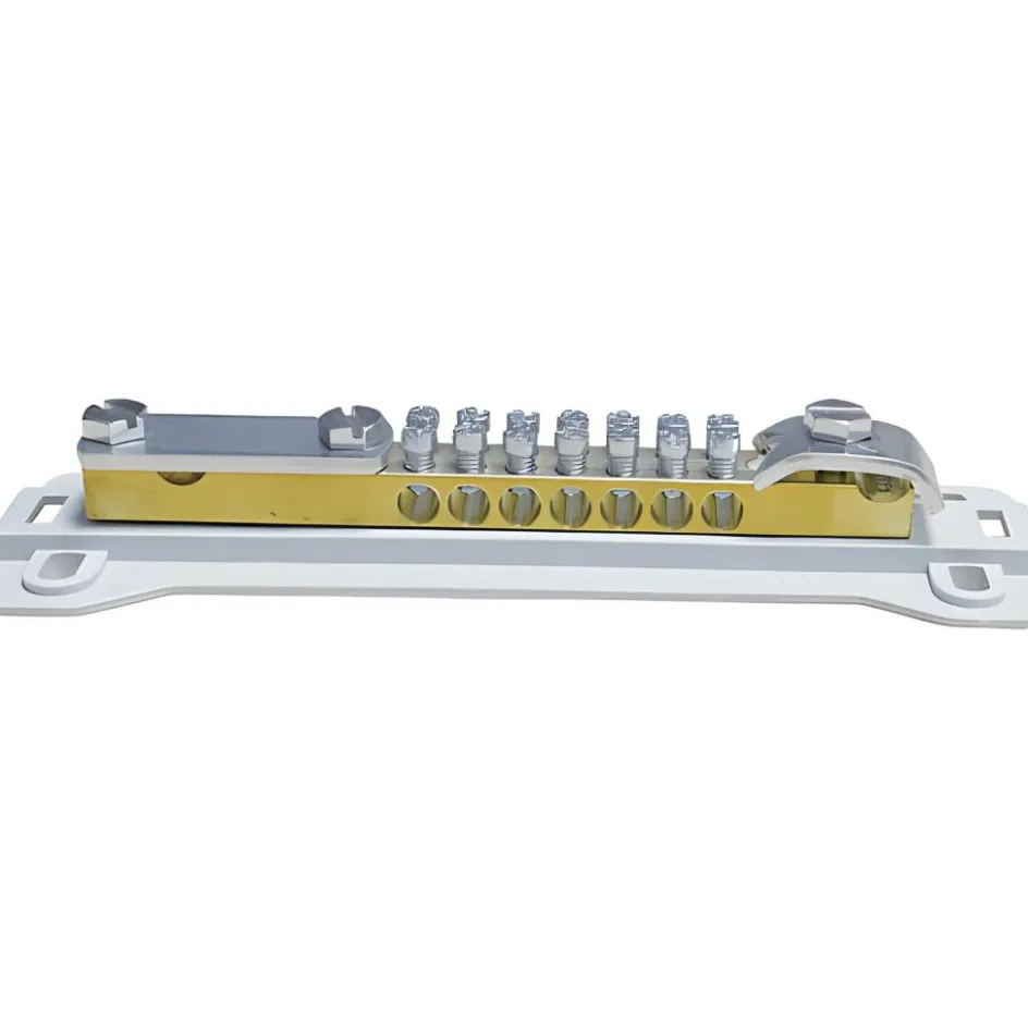 Met een DWS verdeelstrip kunt u stroomkabels verzamelen om deze door te voeren naar één aansluiting. De strip heeft aansluitingen voor: 1x lintklem 30x4mm, 1x ronde geleider 8-10mm, 1x ronde geleider 50mm² en 14x ronde geleider 6 -25mm².