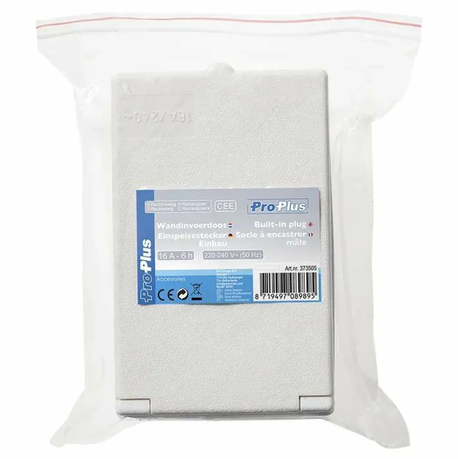 Met de rechthoekige CEE wandinvoerdoos van ProPlus maakt u een betrouwbare stroomaansluiting op uw caravan, camper of buitenruimte. De doos is geschikt voor 16A en heeft een IP44-beschermingsgraad, waardoor hij spatwaterdicht is en veilig buitenshuis gebruikt kan worden.