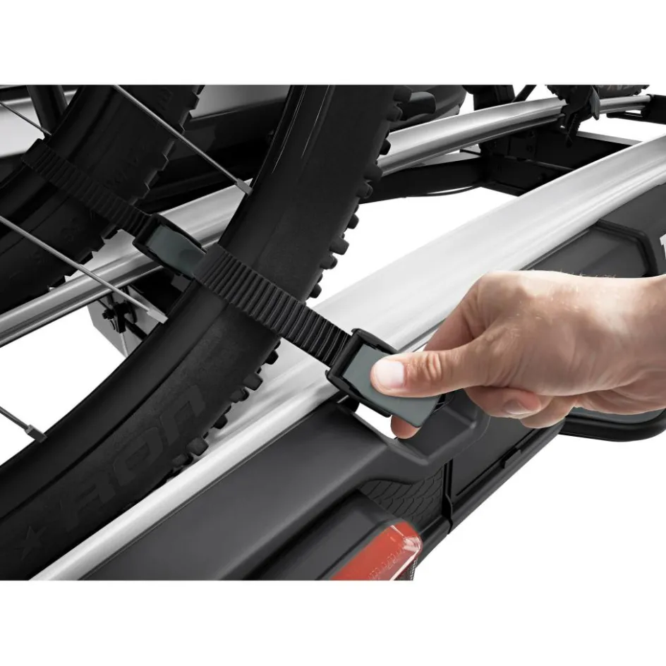 Fietsen zijn makkelijk te laden door de afneembare fietsarmen met Thule AcuTight-knoppen met koppelbegrenzer die klikken wanneer de optimale grip is bereikt. De fietsendrager zelf is ook eenvoudig te monteren doordat de bevestigingshandgreep wordt vergrendeld dankzij de stabiliteit van de koppeling aan de trekhaak.