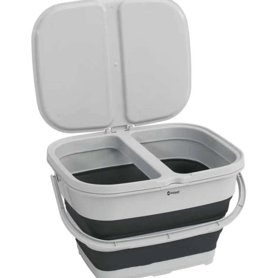 De Outwell Collaps opvouwbare prullenbak heeft twee compartimenten zodat u uw afval kunt scheiden. De plastic zakjes blijven goed aan de rand vastzitten en de deksel houdt vieze luchtjes tegen. De twee vakken zijn geschikt voor zakken van 30 liter. Het formaat van de vakken zijn 335 x 200 x 260 millimeter. Het stevige handvat maakt het verplaatsen van de Outwell afvalemmer makkelijk. Deze emmer zou eventueel ook als mand gebruikt kunnen worden, omdat de deksel en de rand eraf gehaald kan worden.