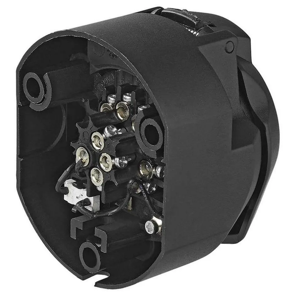 De ProPlus 13-polige Jaeger stekkerdoos met micro-switch is gemaakt om het licht op een aanhanger, vouwwagen, fietsenrek of caravan mee aan te sluiten. Daarnaast kun je, dankzij de aanwezigheid van maar liefst 13 polen, bijvoorbeeld ook de koelkast in jouw caravan aansluiten. Een microswitch zorgt er voor dat de mistverlichting van de auto uitgeschakeld wordt en die van de aanhanger ingeschakeld wordt op het moment dat de kabelboom aangesloten wordt.
