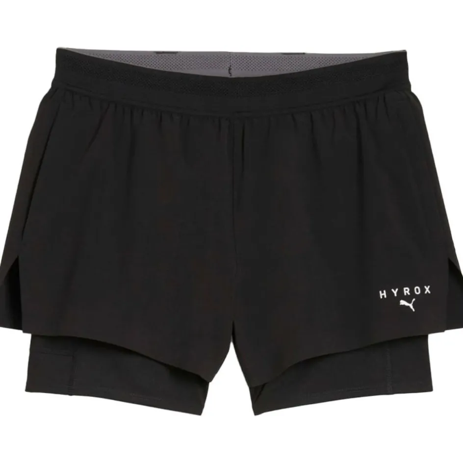 De Puma x HYROX 2 in 1 short is voorzien van een binnenbroek, zodat u veilig en optimaal kunt bewegen en uw focus kunt leggen op prestatieverbetering. De pasvorm is verstelbaar, dankzij de elastische tailleband met trekkoord en omdat het materiaal vocht afvoert, behoudt u de gehele HYROX een comfortabel, droog gevoel.
