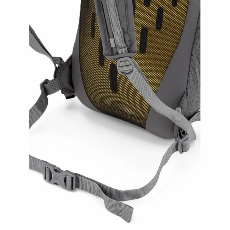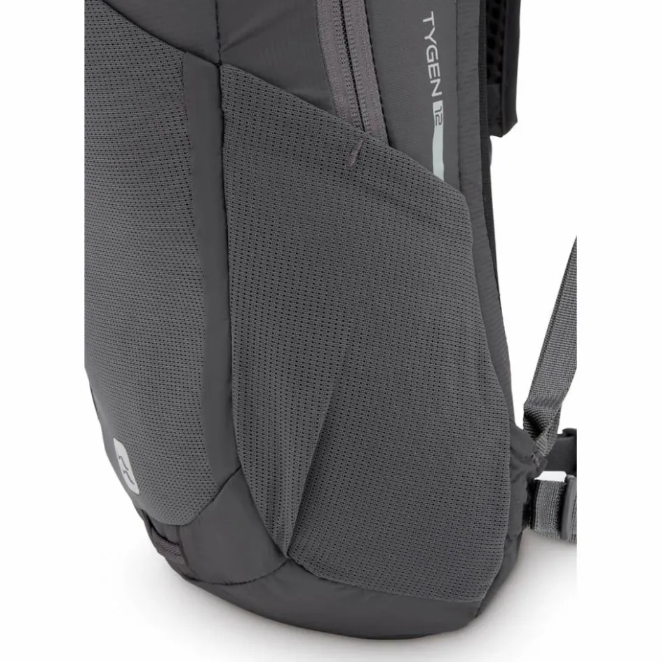 De Rab Tygen 12 rugzak biedt hoog draagcomfort dankzij het lichte gewicht en het ademende draagsysteem. Zo kunt u zorgeloos genieten van uw wandeling, hike of andere activiteit. De rugzak heeft een ruim hoofdvak en een extra bovenvak voor kleine essentials. Aan de borstband bevindt zich een noodfluitje. De heupgordel zorgt voor verbeterde stabiliteit. Deze kan bovendien eenvoudig worden verwijderd wanneer hij niet nodig is. De mesh zijvakken bieden ruimte voor bijvoorbeeld een drinkfles. Ook bevindt zich aan de onderkant een handige lus voor het bevestigen van een fietslampje.