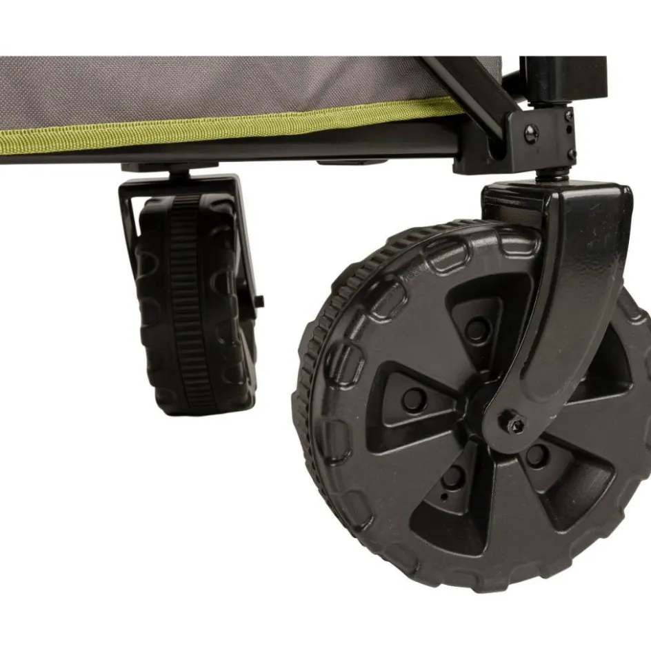 De Caprice Deluxe strandtrolley van Safarica is een luxe, inklapbare beachwagen waar u uw spullen in kunt vervoeren. De wagen heeft een stalen frame en is gemaakt van een stevige polyester bekleding. U trekt de wagen vooruit aan de lange hendel. Aan de trolley hangt een uitneembare koeltas van 45 bij 18 bij 30 centimeter. De wielen zijn groot en hebben een grof profiel die voor voldoende grip zorgen op oneven ondergronden zoals het strand. Volledig ingeklapt is de strandwagen 30 x 30 x 75 cm, het maximale draagvermogen is 50 kilogram.