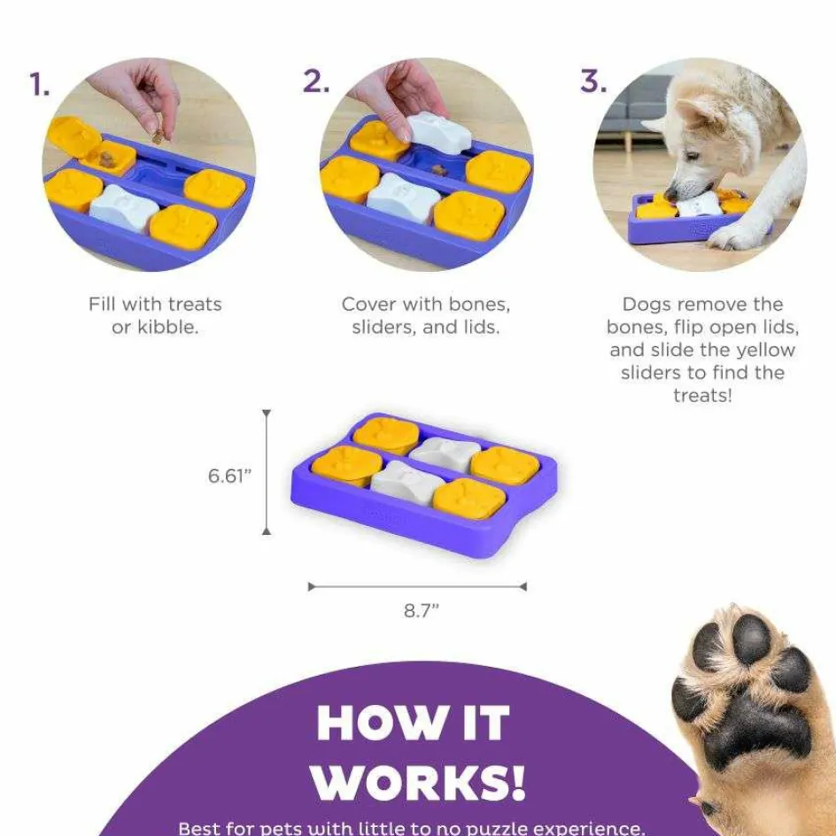 Het Nina Ottosson Dog Brick Small hondenspeelgoed is een interactief spel waarbij uw hond snacks kan ontdekken door de blokjes te openen of te verschuiven. Deze puzzel van niveau 2 is ideaal voor honden met weinig tot geen puzzelervaring. Bovendien zorgt de Dog Brick ervoor dat uw hond langzamer eet, en biedt het waardevolle mentale stimulatie. Geschikt voor kleinere honden en puppy’s.