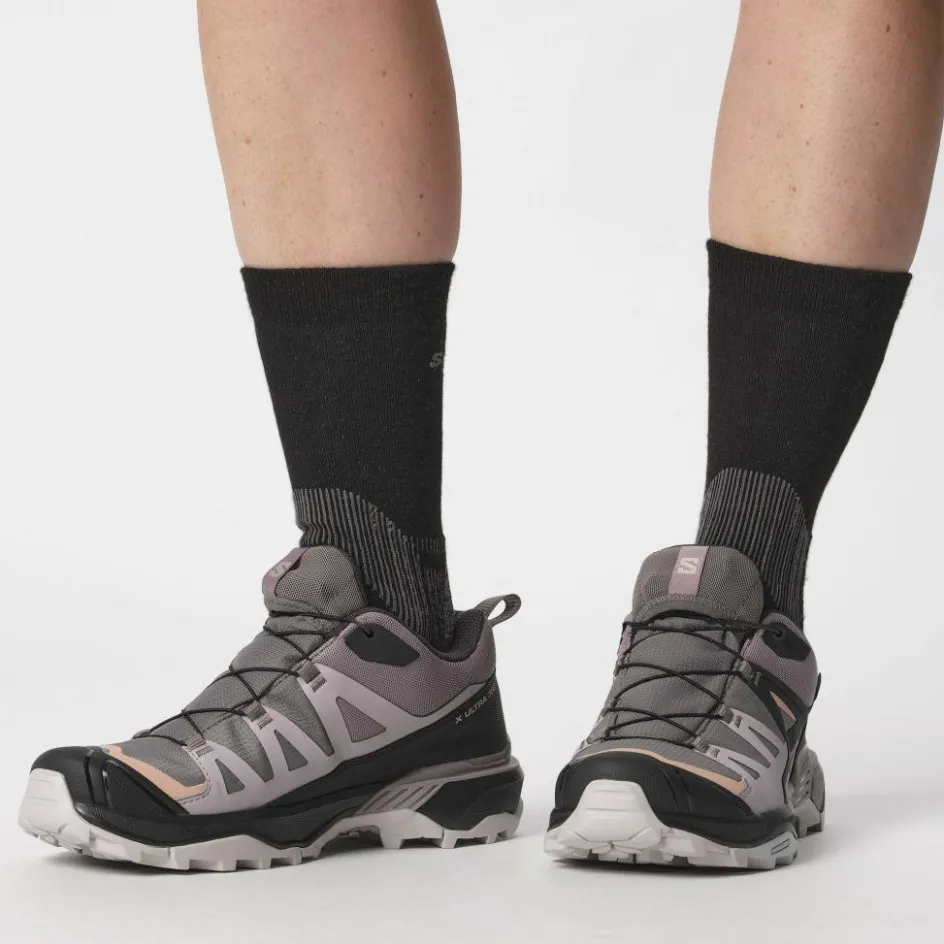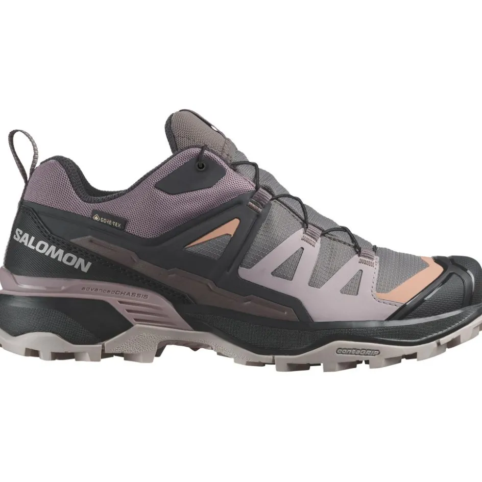 De Salomon X Ultra 360 GTX Lo wandelschoenen voor dames hebben een strak ontwerp met een Quicklace systeem. Zo zijn de schoenen snel en makkelijk aan en uit te trekken. Ook zorgt dit voor een goede aansluiting op de voeten voor veel stabiliteit. Deze wandelschoenen hebben een Contagrip buitenzool, wat voor een goede grip zorgt en deze schoenen geschikt zijn voor natte en gladde terreinen. Door het GORE-TEX membraan blijven uw voeten goed droog bij nat en drassig weer.