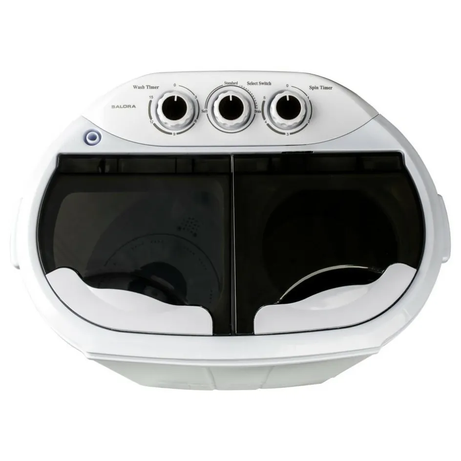 Deze Salora Mini wasmachine heeft een vulgewicht van 3,6 kilogram en een vulgewicht voor de centrifuge van 2 kilogram. De wasmachine beschikt over een timer van 15 minuten. Deze wasmachine is ideaal voor op de camping of op een studentenkamer.