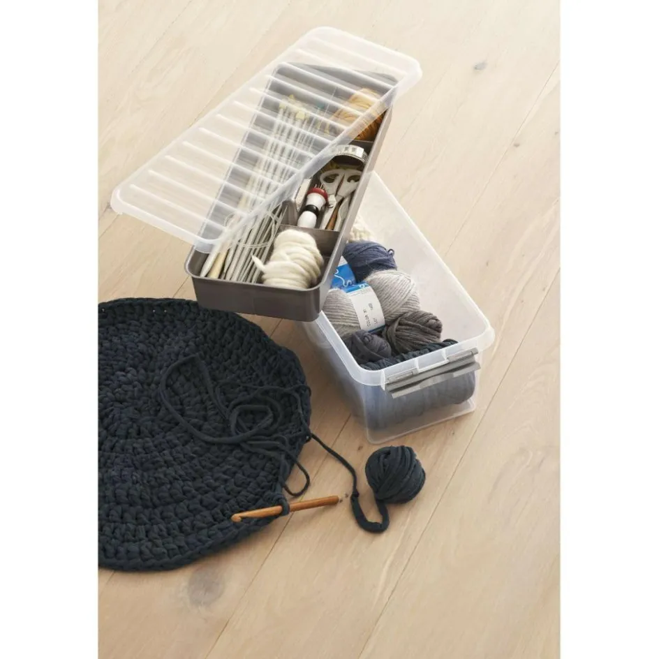 De Sunware Q-line 6,5L MultiBox heeft een langwerpig design wat ideaal is voor bijvoorbeeld tangen, schroevendraaiers en barbecuegereedschap. Deze Sunware opbergbox heeft 6,5 liter inhoud en wordt geleverd met handige inzet met vakverdeling. De Q-line MultiBox is handig te stapelen in combinatie met vele andere maten Q-line boxen van Sunware. Door de stevige sluitclips blijft het deksel goed op zijn plaats en worden uw spullen vocht- en stofvrij opgeborgen.