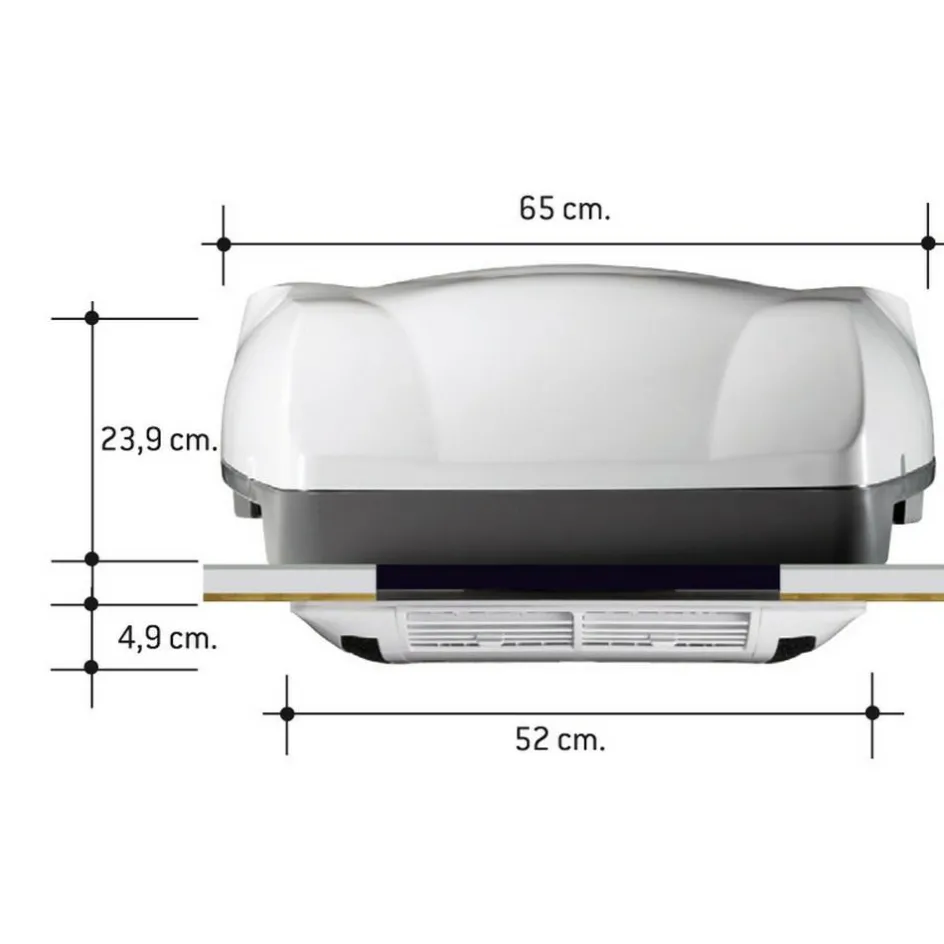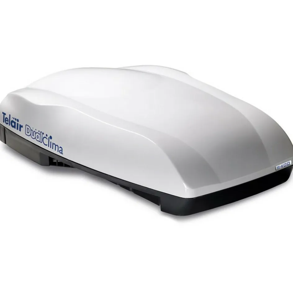 De Telair DualClima 8400H is een stille dak airco, ontworpen voor middelgrote en grote motorhomes en caravans. Zijn geluidsarme werking, zowel binnen als buiten, maakt het ideaal voor comfortabel reizen. De superplatte luchtverspreider met een geleidelijk aflopend profiel aan alle vier de zijden zorgt voor een gelijkmatige luchtafvoer naar voor- en achterkant, met de mogelijkheid om in alle richtingen te worden gericht. Met een efficiënte warmtepomp biedt het verwarming tot een buitentemperatuur van 4°C, met automatische regeling voor optimale ventilatiesnelheid en koel- of verwarmingsfunctie via de AUTO-modus. De afstandsbediening met programmeerbare timer en verlichtingsregeling van de luchtverspreider biedt gemak. Sensoren beschermen tegen ijsvorming, terwijl de interne filters verwisselbaar en reinigbaar zijn. Geschikt voor daken met een dikte van 30 tot 40 millimeter.