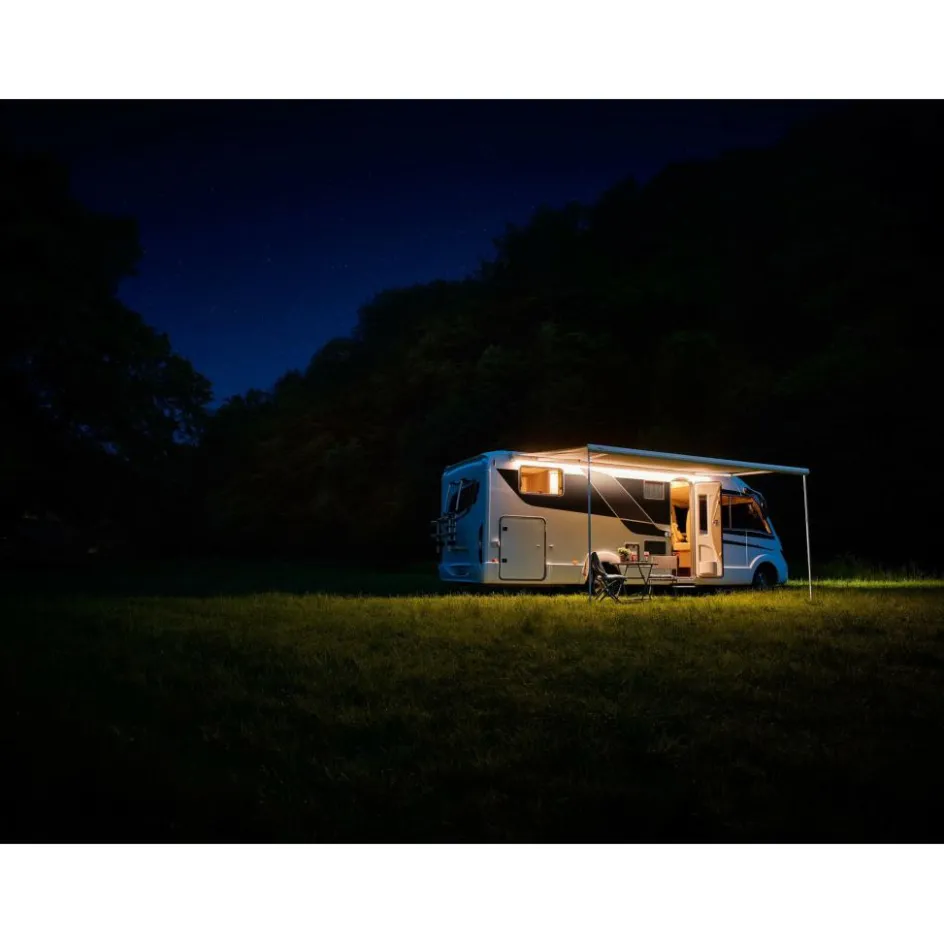De Thule 5200 352 cassetteluifel heeft een uitval van 250 centimeter. De lengte van dit model is 352 centimeter. De ruime afmetingen zorgen voor extra ruimte die bescherming biedt tegen zon en regen. De steunpoten van dit model zijn verticaal uitvouwbaar, zodat de camper of caravan niet beschadigt. Deze luifel kan open en dicht wanneer de deur van uw kampeerbus openstaat. De enige voorwaarde is dat u de hoek naar wens opstelt. Dankzij het nieuwe cassetteverstelsysteem blijft de luifel goed sluiten. De regengoot is uitgerust met een voorlijst waardoor schoonmaken makkelijker is.